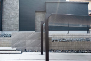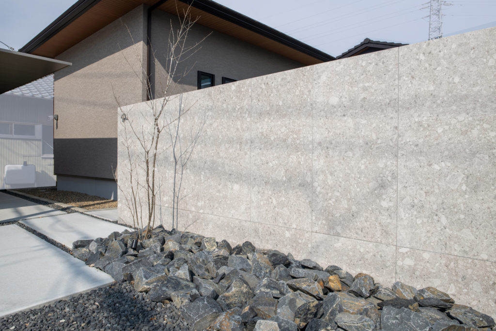 KNUTの標準サイズよりもさらに大きな600mm×1200mmのタイルを使用したデザイン門柱